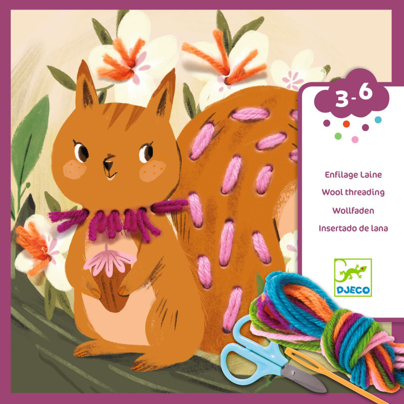 Voici le coffret Enfilage laine Petit pas de Djeco, une activité à la fois créative et ludique qui initie les enfants de 3 à 6 ans à la broderie.
