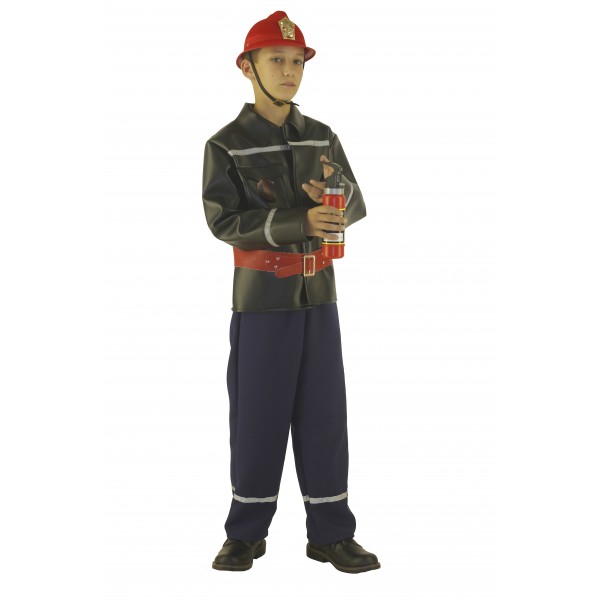 Le costume comprend un pantalon sur lequel il y a les bandes réfléchissantes comme "pour de vrai", une veste imitation cuir, une ceinture rouge et un casque. La tenue est livrée avec un extincteur.