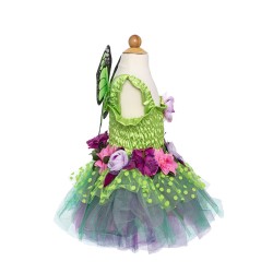 Cette jolie robe de fée de luxe Fairy Blooms Deluxe Dress de Great Pretenders transportera votre enfant vers un monde magique et féérique! Un haut smocké en satin, une jupe er tulle imprimé qui comporte plusieurs couches de tissus verts et violets, de grandes fleurs décorant la taille, voici un costume parfait pour les petites rêveuses en quête d'évasion Ce déguisement ne serait pas complet sans les jolies ailes intégrées dans le dos de la robe !Â
