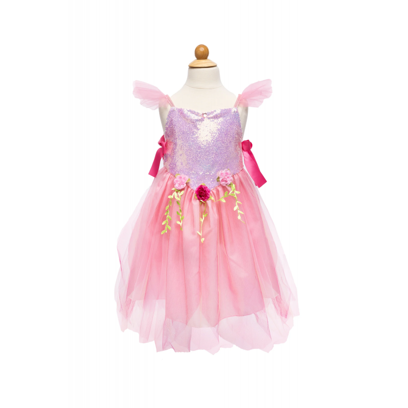Le haut est orné d'une variété exquise de sequins roses scintillants. Les pétales sont confectionnés en organza scintillant, en tulle et en doublure, conférant à la jupe une plénitude et une touche ludique !