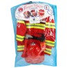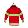Ce costume comprend un manteau rouge avec des bandes réfléchissantes, un casque de pompier en plastique avec emblème, un badge nominatif personnalisé amovible, une hache de jeu et un extincteur qui se transforme en pistolet à eau.