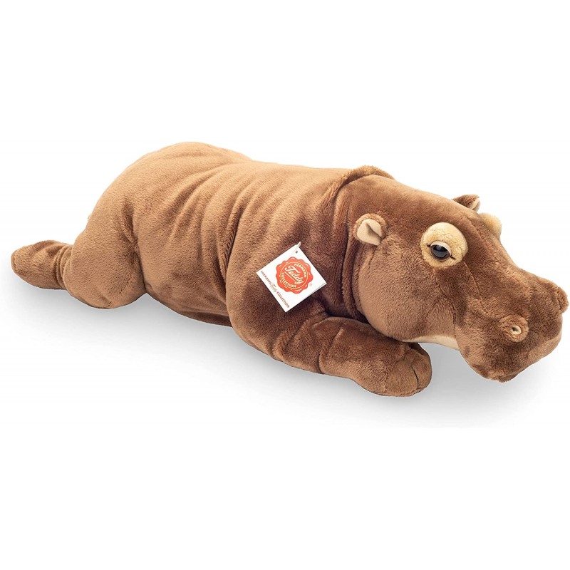 Allongée sur ses quatres pattes cette Peluche Hippopotame allongé 48 cm d'Hermann Teddy fera découvrir les animaux de la savane d'une façon ludique et douce.
