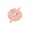 Confectionné en éponge velours aux nuances de rose poudré et crème, il est muni d'une attache-tétine pratique.