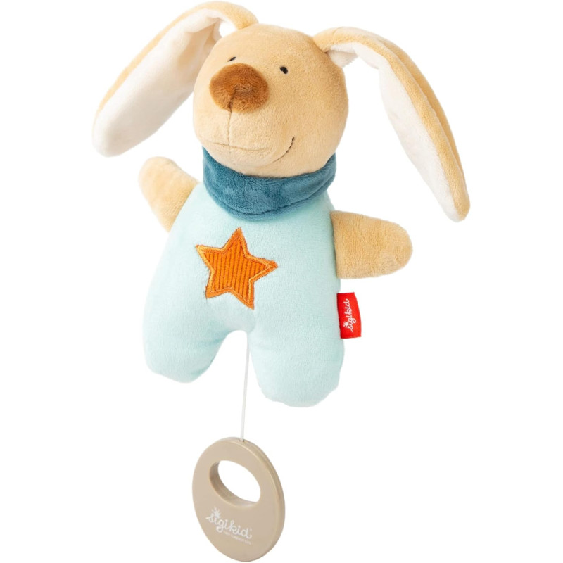 Cette peluche musicale mini lapin bleu clair de Sigikid sera le nouveau compagnon de bébé.