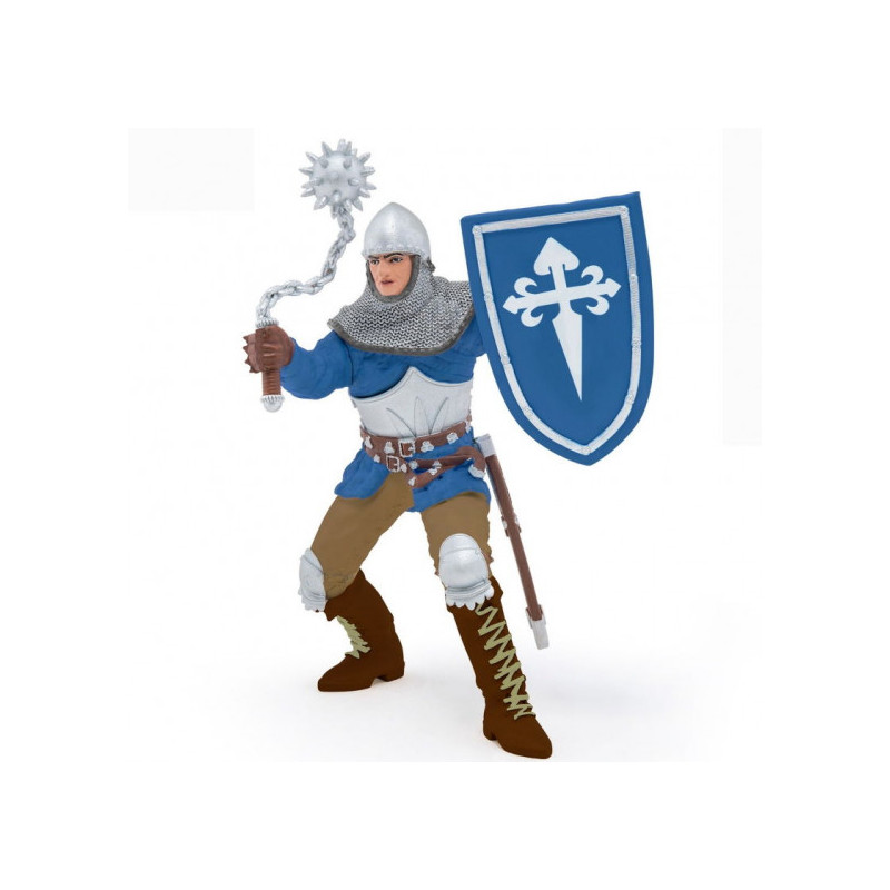 Admirez la figurine Chevalier à la masse d'armes de Papo, portant fièrement un bouclier aux couleurs du royaume pour se protéger.