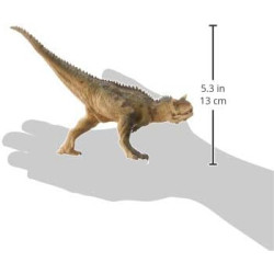 La figurine de dinosaure Carnotaure de Papo impressionne par sa mâchoire mobile, révélant des dents acérées en forme de poignards.