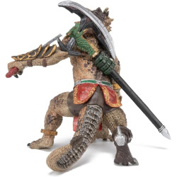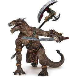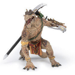 Armé de son long sabre, le Mutant Dragon de Papo est prêt à entrer en combat. Sur son dos repose une immense hache à double tranchant, ornée d'une tête de dragon, ajoutant à son allure redoutable.