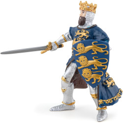 La Figurine Roi Richard Bleu de Papo représente Richard Cœur de Lion, l'un des rois les plus emblématiques de l'histoire médiévale. Vêtu d'une tunique bleue ornée de lions dorés, symbole de la royauté anglaise, et coiffé d'une couronne dorée, il incarne la noblesse et la bravoure des chevaliers du Moyen Âge.