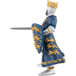 Cette figurine est finement sculptée et peinte à la main, mettant en valeur les détails de son armure étincelante, de son épée levée prête au combat, et de son bouclier arborant les armoiries royales. Elle est compatible avec les chevaux de la collection Papo, permettant de recréer des scènes épiques de batailles ou de cérémonies royales.