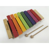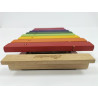 Fabriqué en bois d’ayous, il se compose de lames colorées inspirées des Boomwhackers®, mesurant 30 mm de large et 15 mm d’épaisseur.