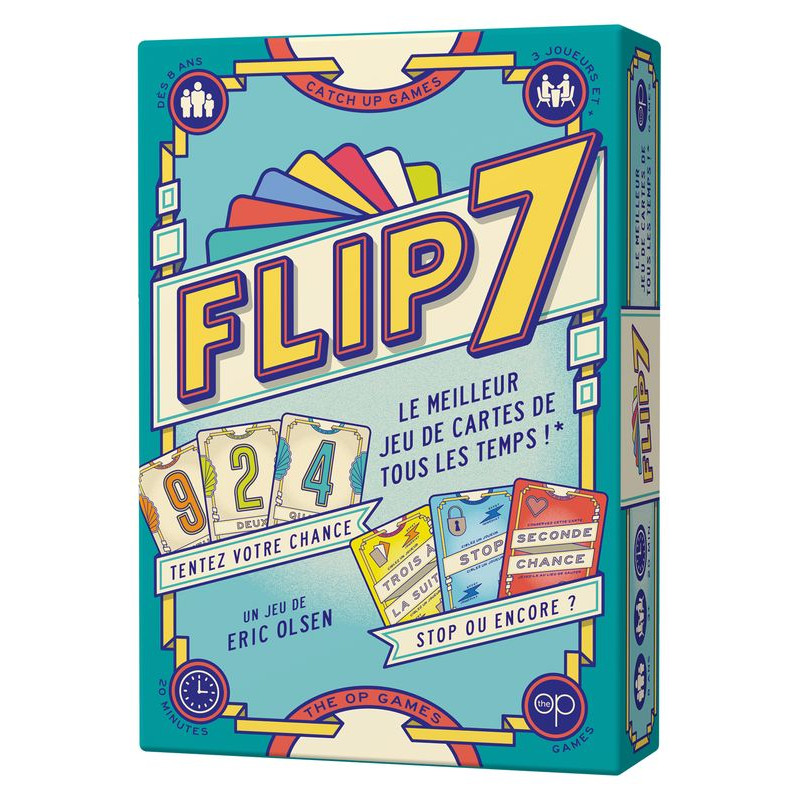 Si vous parvenez à collectionner 7 numéros différents, vous déclenchez un Flip 7 : vous terminez la manche et gagnez 15 points supplémentaires sous le regard surpris de vos adversaires !
