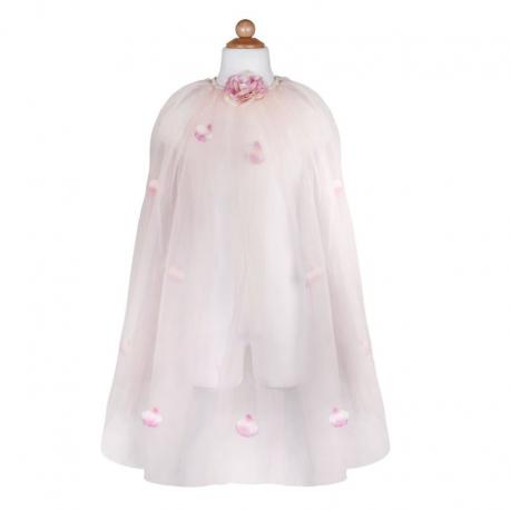 Cette cape de princesse de Great Pretenders au magnifique teintes d'ivoire antique et de rose poudré, elle est faite d'organza doux et ornée de pétales de rose sur la cape.