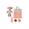 La peluche Stella est un jeu symbolique qui se compose d'un sac faisant également office de lit, d'une peluche, d'une robe, d'un doudou, d'un livre miniature, d'une couche et d'un pot.