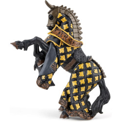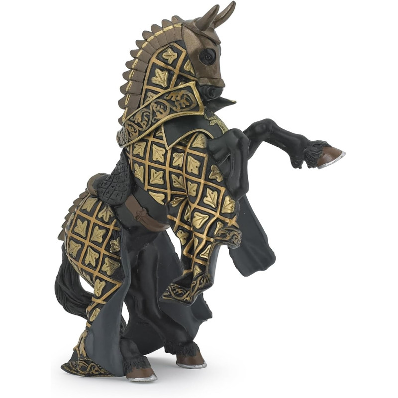 Cette figurine est finement sculptée et peinte à la main, mettant en valeur les détails de son harnachement élaboré, de sa posture dynamique et de ses ornements royaux. Elle est compatible avec les chevaliers de la collection Papo, permettant de recréer des scènes épiques du Moyen Âge.