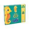 Découvrez les puzzles primo dans la mer de Djeco, 3 puzzles spécialement conçus pour les plus petits à partir de 2 ans, de grosses pièces en cartons illustrées et colorées.