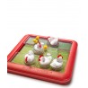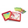 Insérez une carte défi sous le couvercle transparent du jeu, puis déplacez les tuiles représentant les poules jusqu'à ce que chacune d'entre elles couvre un œuf. Les 5 tuiles glissent à l'intérieur du plateau sans s'en détacher !
