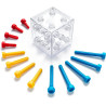 Dans Criss Cross Cube de Smartgames, l'objectif est de placer les 13 boulons dans le cube transparent, en veillant à ce qu'ils ne se bloquent pas mutuellement.