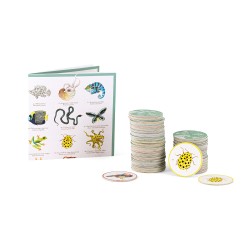 Le jeu contient 36 cartes animaux en double et un poster. Ce memory met en valeur les couleurs et les formes de 36 animaux surprenants, accompagné d'un imagier pour aider les plus jeunes.