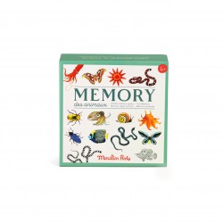 Le jeu Memory des animaux de la collection Tout autour du monde de Moulin Roty est un jeu de mémoire pour les enfants à partir de 4 ans, fabriqué en France.