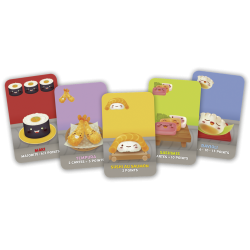 À chaque tour, choisissez soigneusement les cartes Sushi que vous placerez devant vous pour accumuler des points, tout en faisant passer les autres cartes à vos adversaires. Préférez-vous les raviolis ou les desserts ? Ou bien allez-vous essayer de rassembler les duos de tempura ?