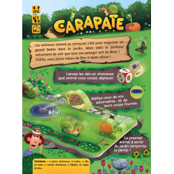 Dans le jeu Carapate de Gigamic, les animaux se rassemblent chaque été pour organiser un grand festin dans le potager : choux, salades, tomates, rien ne manque !