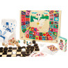 Le grand coffret multi-jeux illustré par Ingela P. Arrhenius de Vilac est un superbe ensemble de jeux traditionnels au style vintage et rétro, conçu pour 2 à 4 joueurs dès 4 ans.