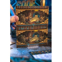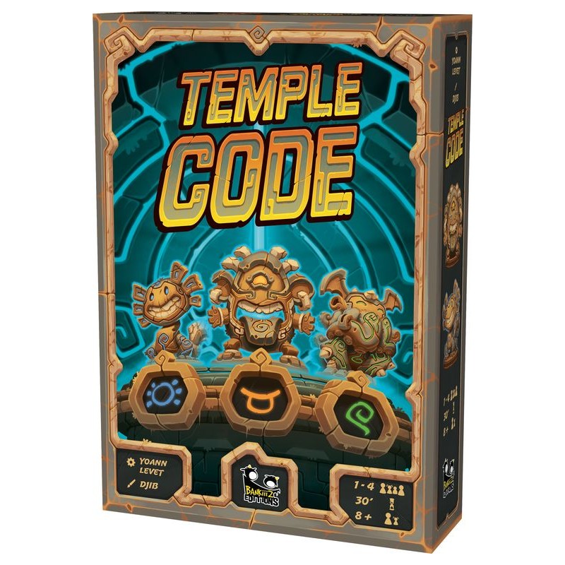 Dans Temple Code de Blackrock Games, chaque joueur reçoit une carte Combinaison à deviner, ainsi que 2 cartes faces visibles devant lui.