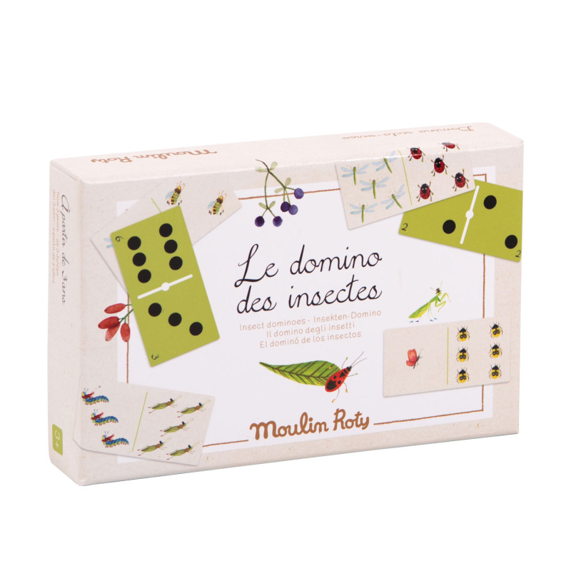 Le domino des insectes de la collection Le Jardin du Moulin par Moulin Roty est un joli jeu éducatif pour les enfants à partir de 3 ans, pensé pour éveiller leur curiosité tout en s’amusant. Ce grand classique est revisité avec poésie, à travers de tendres illustrations inspirées du jardin.