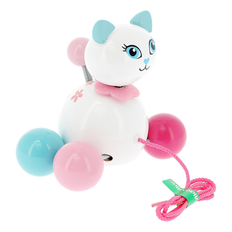 La bouille craquante du jouet à tirer en bois Minette de Vilac ne manquera pas de faire fondre petits et grands.