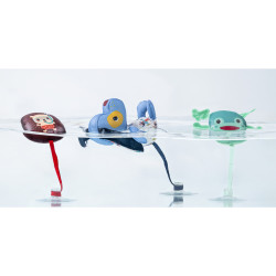 Chaque personnage a sa propre personnalité : Jules fait la planche en laissant flotter ses longues oreilles, la grenouille plonge avec ses pattes rigolotes, et Léon le hérisson explore les profondeurs avec son tuba !
