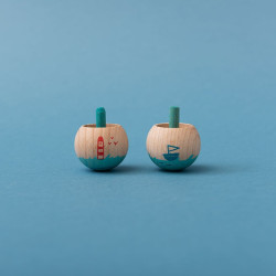Une toupie magique en bois d'hêtre et teinte à l'eau. Aussi connue sous le nom de tippe top.