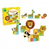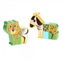 Contenu : 4 animaux de la savane aimantés en bois à recomposer (12 pièces au total).