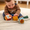 Des hochets, des miroirs en plastique et des feuilles crépitantes sont cachés dans ce set multicolore de quatre petits cubes en mousse de Sigikid.