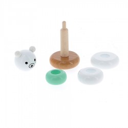 Contenu: Un empilable constitué d'un socle, de 3 anneaux et d'une tête d'ours.