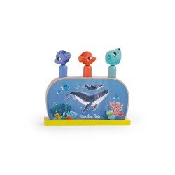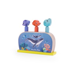 Le Pop up de la collection "Les aventures de Paulie" de Moulin Roty est un jouet d'éveil en bois aux couleurs de l'océan, conçu pour divertir les enfants dès 12 mois.