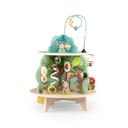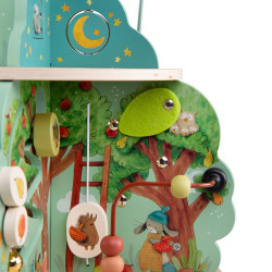 Ce grand jouet propose 4 univers illustrés et de nombreuses activités captivantes : grelot, engrenages, boulier, labyrinthes, miroir et éléments en feutrine pour explorer les textures. Parfait pour stimuler l’éveil, la motricité et les premiers apprentissages des tout-petits.