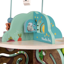 Le Jardin multi-activités de la collection Trois Petits Lapins de Moulin Roty est un jouet d’éveil en bois aux couleurs douces du jardin, conçu pour les enfants dès 12 mois.