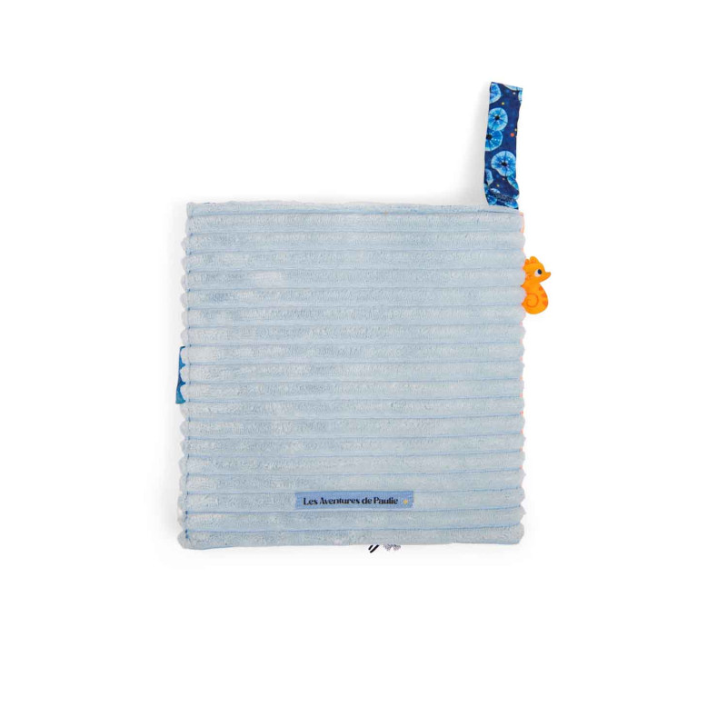 Composé de 6 pages sur le thème de l'océan, il est doté d'une lanière à scratch pour un transport facile. Les petits pourront y rencontrer Paulie le poulpe et ses amis marins, avec des éléments en relief qui éveillent leur curiosité et encouragent la manipulation.