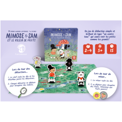 "Mimose & Sam et le Voleur de Fruits" est un jeu de déduction accessible à tous, où petits et grands s’affrontent dans un défi captivant de type "un contre tous".