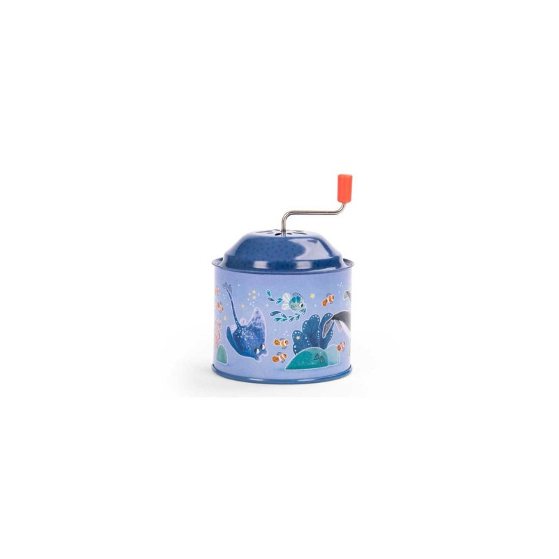 Tournez la manivelle et laissez la magie opérer ! Ce moulin à musique en métal, joliment illustré sur le thème marin avec Paulie le poulpe et ses amis de l'océan, évoque avec tendresse les jouets de notre enfance.
