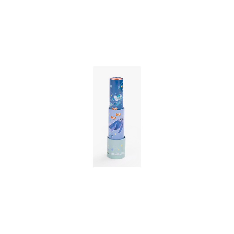 Plongez dans l'univers marin avec le Kaléidoscope Longue-Vue de la collection Les Aventures de Paulie de Moulin Roty. Ce jouet optique, illustré des amis de Paulie explorant les fonds marins, permet aux enfants de découvrir une multitude de combinaisons de couleurs en tournant les deux parties du kaléidoscope dans des directions opposées. Un jouet éducatif et ludique qui stimule la curiosité et l'imagination des petits explorateurs.