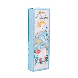 Poupée au doux visage brodé et sérigraphié, présentée dans un coffret illustré par Lucille Michieli.