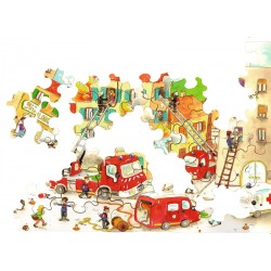 Découvrez ce magnifique puzzle en bois de 50 pièces sur le thème des pompiers de Puzzle Michèle Wilson.