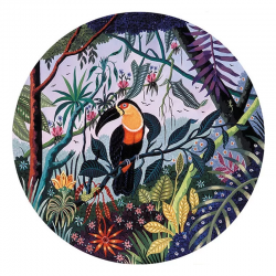 Découvrez ce magnifique puzzle en bois de 150 pièces inspiré du célèbre tableau Toucan Ariel de Alain Thomas par Puzzle Michèle Wilson.