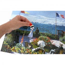 Découvrez ce magnifique puzzle en bois de 650 pièces inspiré du célèbre tableau Terrasse à Sainte Adresse de Claude Monet par Puzzle Michèle Wilson.