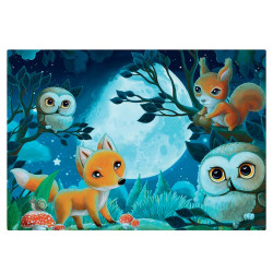 Après avoir séparé les pièces de chaque puzzle en utilisant le motif au dos, votre enfant pourra reconstituer les 2 puzzles illustrant des animaux sauvages dans les sous-bois la nuit et au clair de lune.