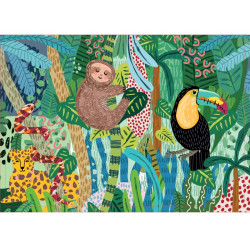 En assemblant les pièces, votre enfant découvrira progressivement une scène mettant en scène des animaux tropicaux dans une forêt verdoyante.