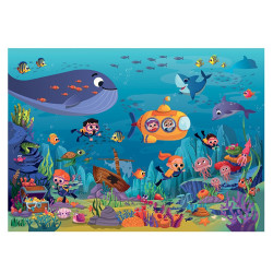 Fabriqué en France, ce puzzle coloré dévoile une scène sous-marine animée, peuplée de poissons, coraux et plongeurs en exploration. Pour aider votre enfant à reconstituer l’image, un poster est inclus en guise de modèle.