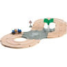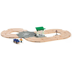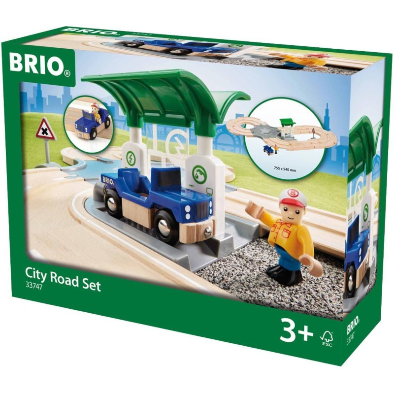 Un paysage urbain moderne qui peut être joué séparément, mais qui convient également très bien en complément d'autres décors de jeu Brio.