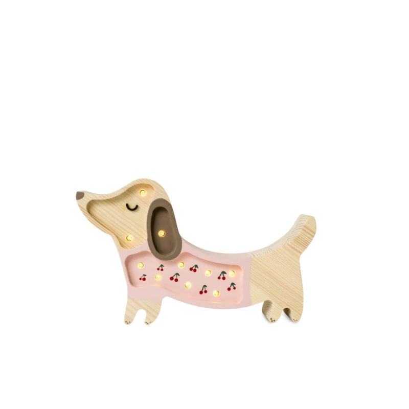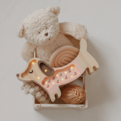Pas seulement pour les chambres à coucher, la Lampe veilleuse bois chiot pull rose avec petites cerises, avec son variateur intégré, apportera une ambiance douce et relaxante dans n'importe quelle pièce de la maison. De plus, la gamme de designs permet à chacun de trouver la Little Light qui lui convient.